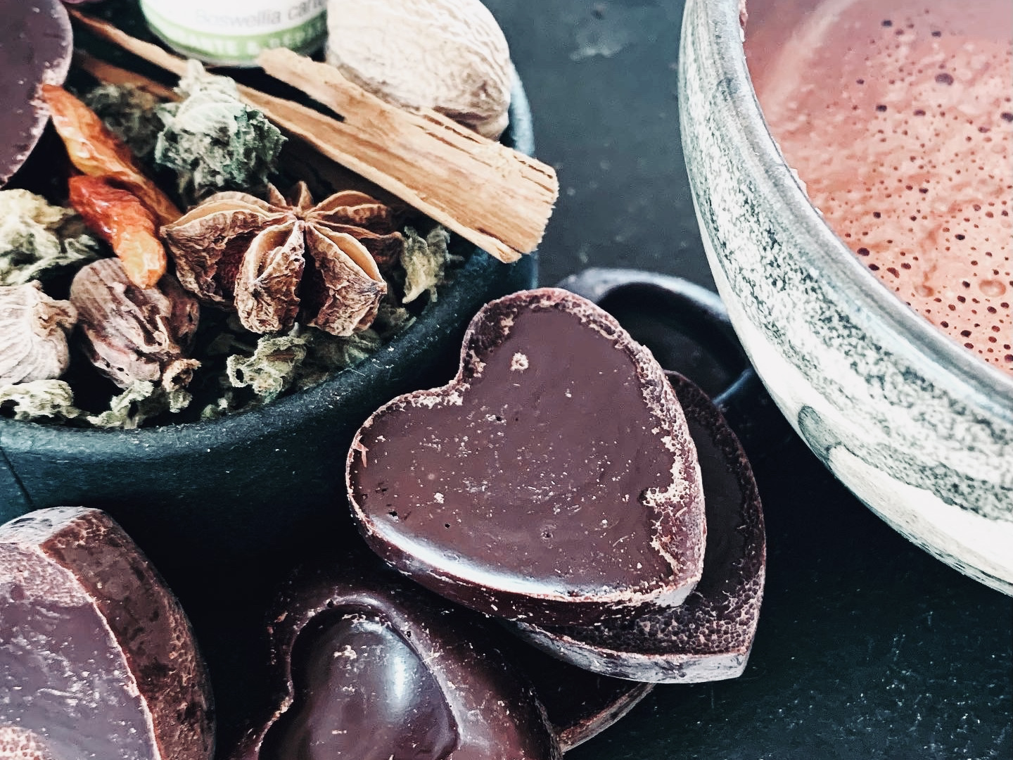 The ancestral combination of cacao with a hint of rose … to open the heart.